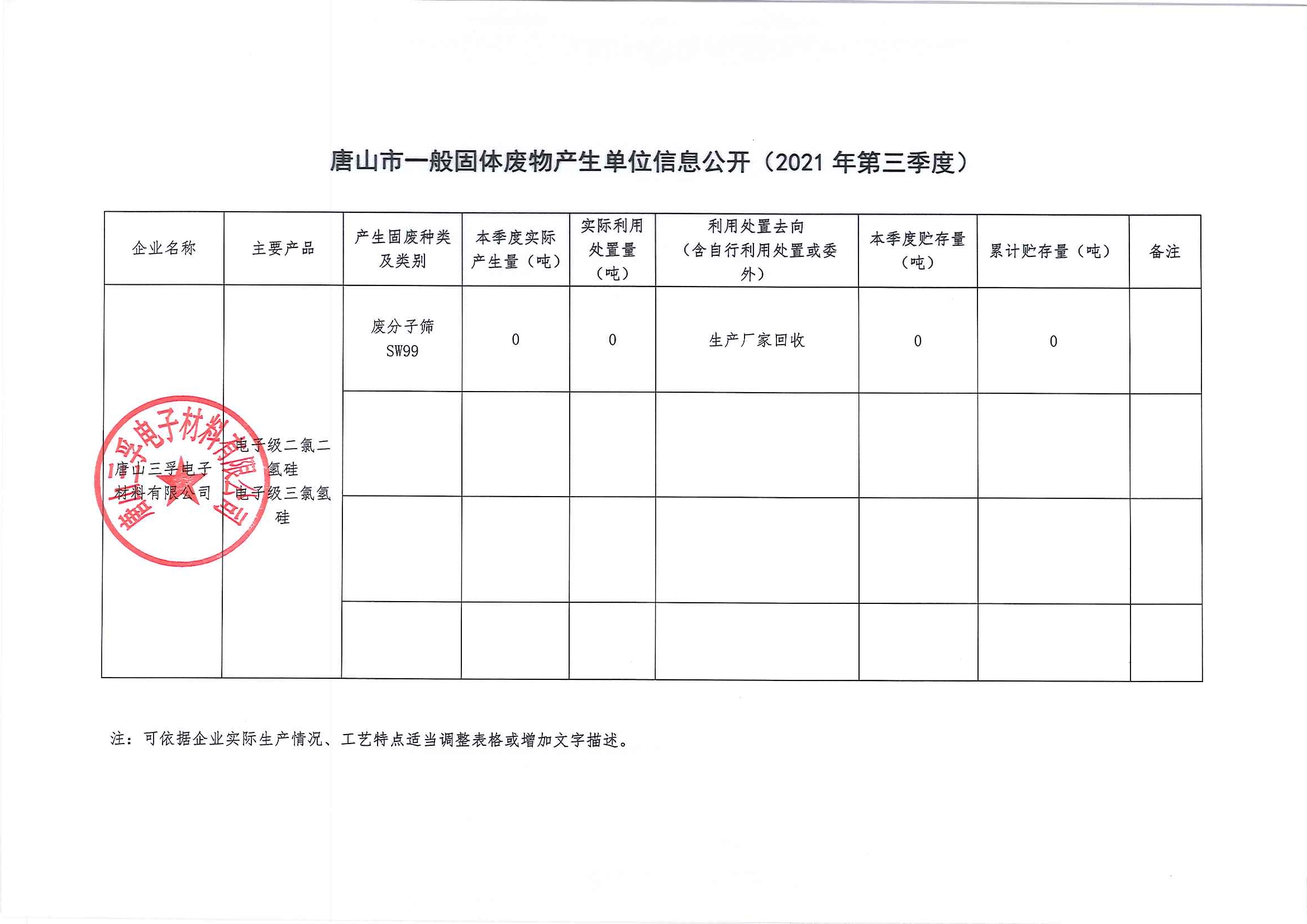 唐山三孚電子材料有限公司 一般固廢 三季度信息公開