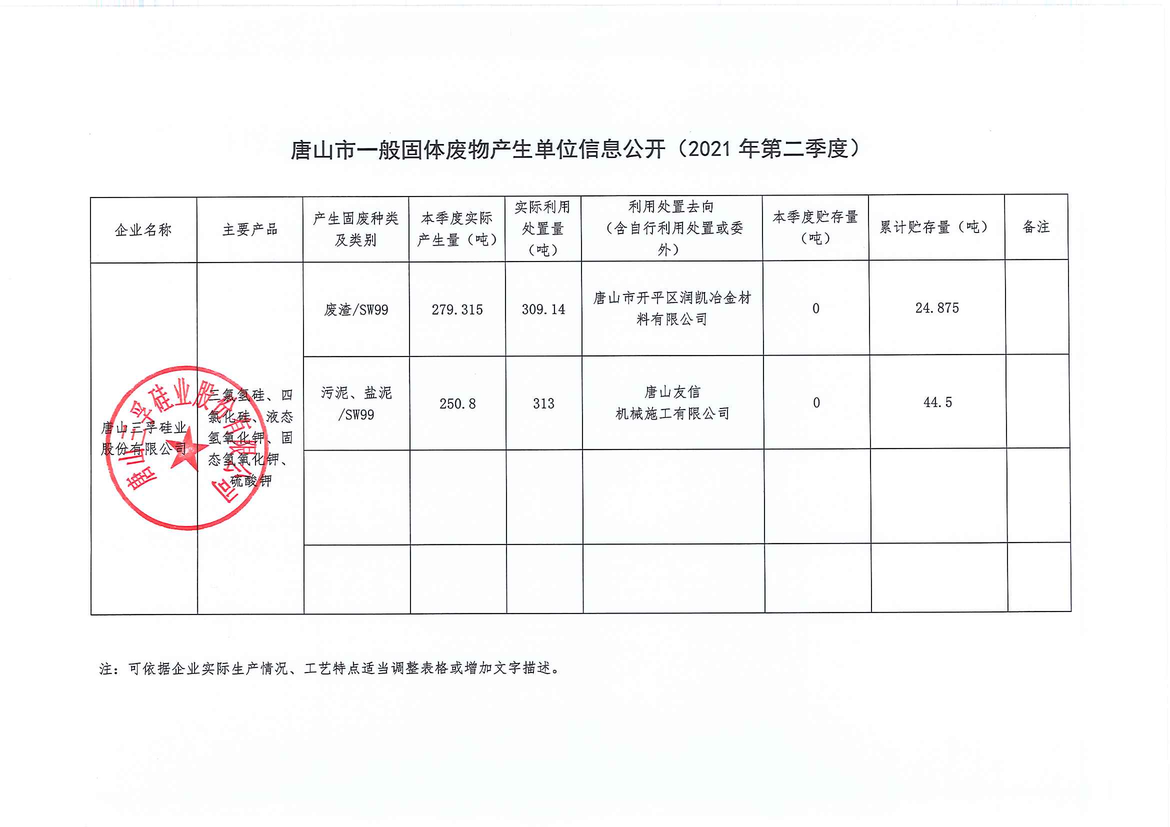 唐山三孚硅業(yè)股份有限公司 一般固廢 二季度信息公開