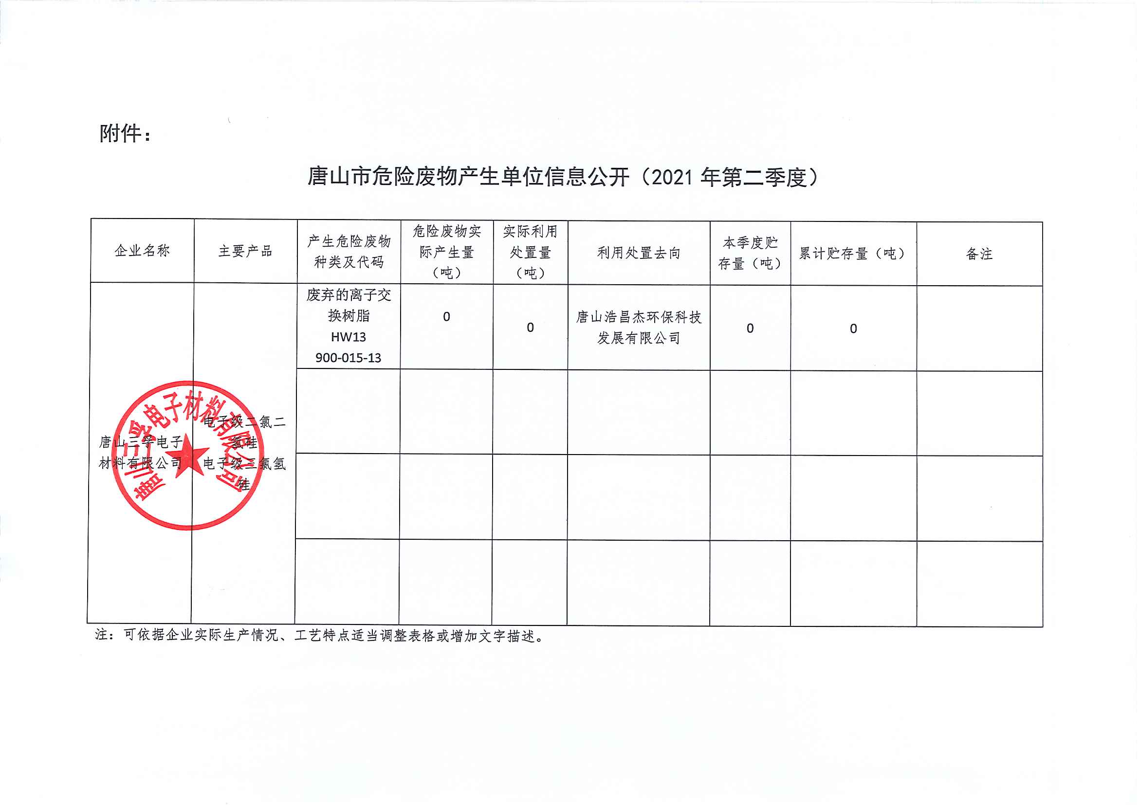唐山三孚電子材料有限公司 危險廢物 二季度信息公開